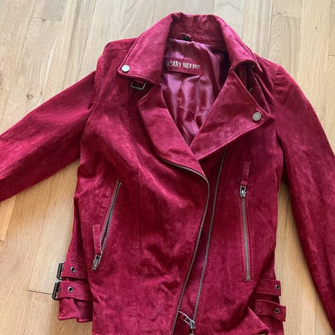 Knallfin hakke,burgunder/rød I fargen,litt liten I str og mer som en M,står L inni