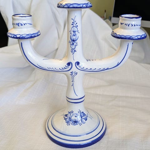 3 armet lysestake høyde høyeste punkt 28 cm.