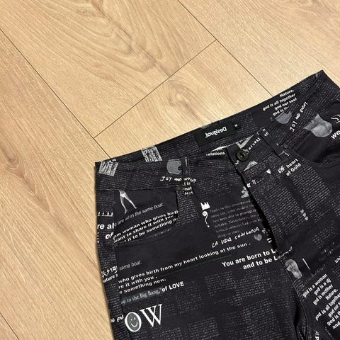Desigual bukser i hvit farge for damer, størrelse M. Buksene har et unikt design med dekorative detaljer og knapper. Passer til ulike anledninger og gir en stilfull look. Sender også som brev. Kom gjerne med bud.