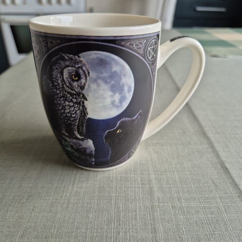 Zodiac kopp. Høyde 15 cm. Diameter oppe 10 cm. Volum 0,5 l. Kan sendes, kjøper betaler frakt.
