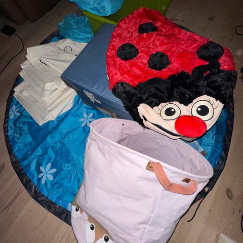 Solid og stilaktig bag for oppbevaring av f.eks. puter, kosedyr, klær mv