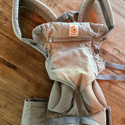 Eldre og bleket i fargen, men fullt fungerende BabyBjørn bæresele.