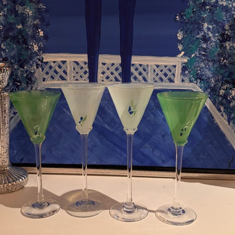 6 høye elegante Martiniglass med logo.