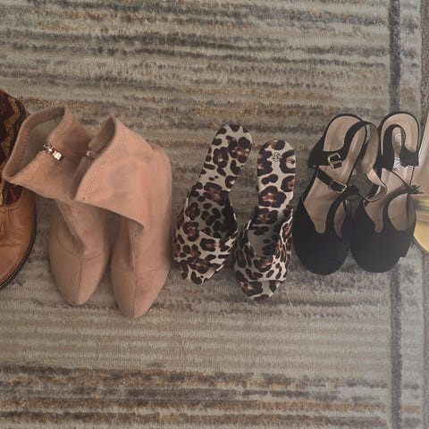 Noen er ubrukt og noen er fin brukt. Forskjellige vesker og sko.