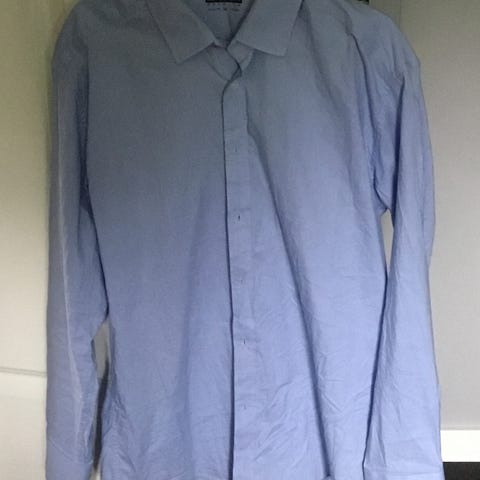 Pent brukt stripete blå Dressmann skjorte str L. Egyptisk bomull. Pent brukt. Sendes mot porto.