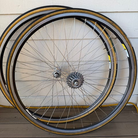 Svært lite brukte hjul. 130 mm bakaksling. Formula nav. Bygd av Glory Days Cycling Dudes.