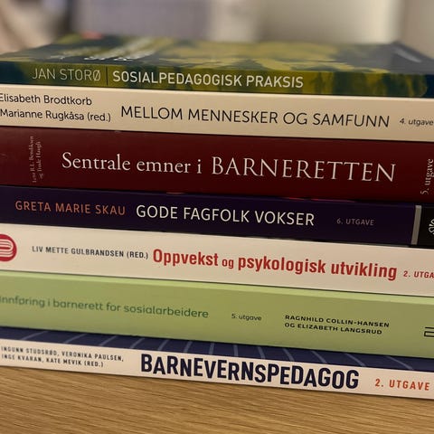 Selger diverse pensum-bøker etter fullført studie i sosialt arbeid V23 og master fullført V25. Sosionom. Barnevernsarbeid. Bøker fra alle årene/emnene. Pris varierer fra bok til bok, se bildene videre for pris og hvilke jeg fremdeles har. Kan tilby pakkepris ved kjøp av flere.