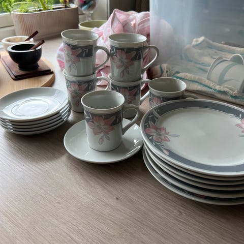 porselen Lotus . 6 stk koppasjett