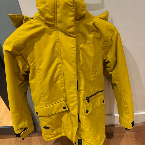 Nesten ny og lite brukt vinterjakke . Den er regntett . Kjempe god jakke . Ingen merker eller hull . Ingen slitasje heller . St. 150