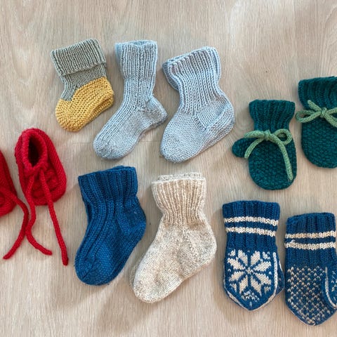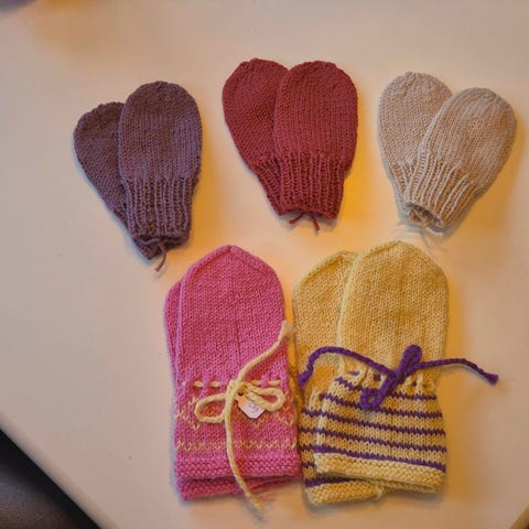 Som nye, nydelige strikkavotter uten tommel. Vil passe frå ca 3-6 mnd.