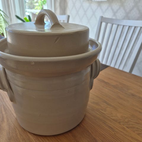 Volum ca. 4,5 liter. 35,5 cm høy, 29,5 cm bred (hank til hank), 21 cm diameter åpning.