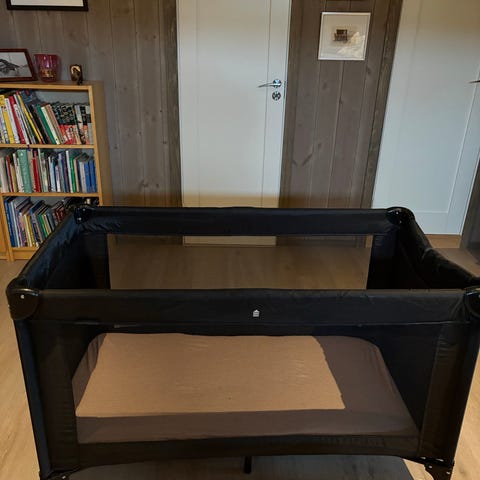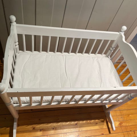 Kjempe fin vugge, pusset opp og malt av oss selv, med madrass, overmadrass og sengetøy. Du får alt for 700kr!