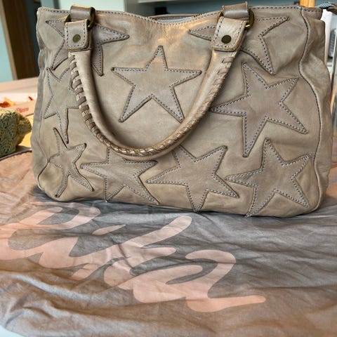 Selger en pent brukt veske fra Rika i mørkt brunt skinn.