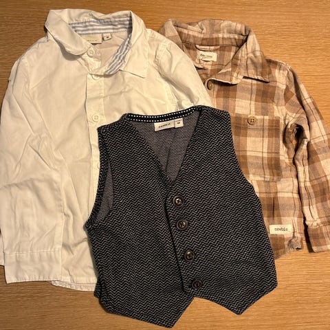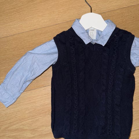Skjorte og vest i str 86. Brukt få ganger av ett barn. Røyk og dyrefritt hjem.