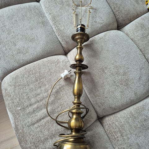 Lampen har en klassisk design med søyleform og står på tre løveføtter.