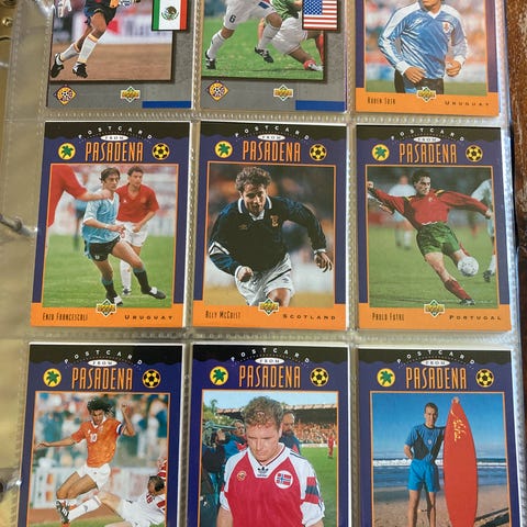 14 fotballkort fra VM 1994 i USA selges for 125 kr. Selges samlet
