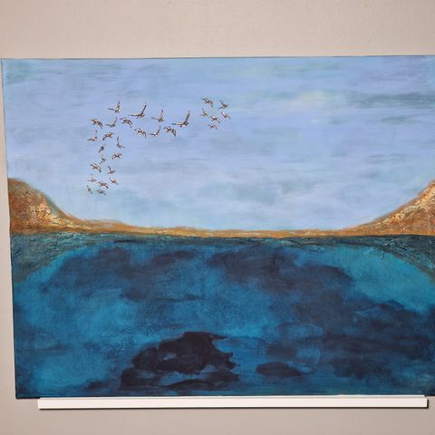 Maleri av unikt veiskilt, selvlysende maling. 80 x 80 cm