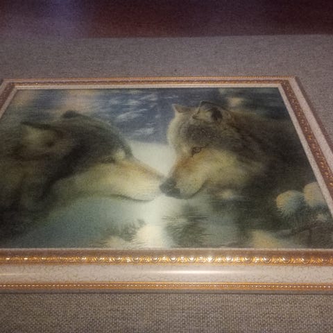 Vintage bilde av to fine ulver i svart plastramme med plastglass ( ser tre dimensjon ut).