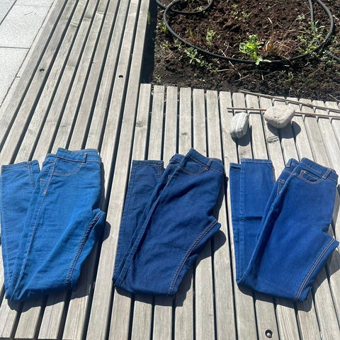 Jeans med print i str 38 selges da den ikke blir brukt. Noe liten i str/lite stretch. Kjøpt på Bershka i München ☺️ Ene beltehanken er slitt, ellers fin stand. Buksa er lite brukt 😊