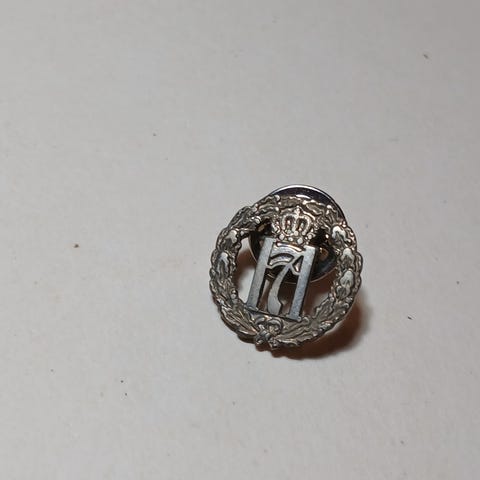 Jeg selger en fin minnepins som ligner på Haakon VIIs luemerke til beret. Fin å ha på jakken. Diameter 17-18 mm.