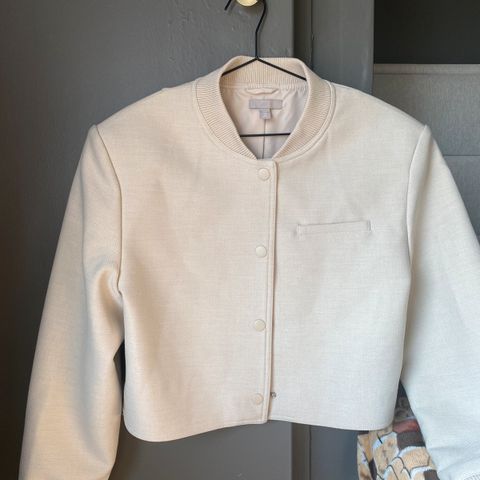 Pent brukt foret jakke fra Zara. Veldig fine detaljer med glidelåser på skuldrene og små sølvtråder i ytterstoffet. Har for mange jakker og rensker opp i skapet:) Den er veldig behagelig og er nett i fasongen.