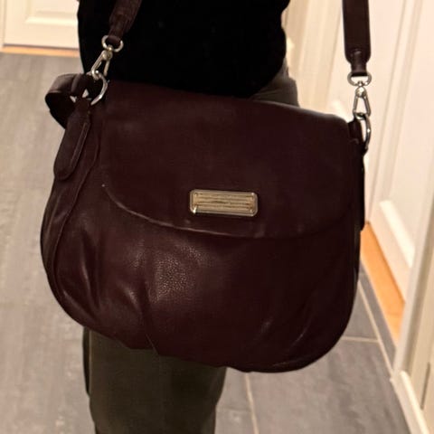 Pen anvendelig skinnveske ( ekte skinn) , farge lyse lyse brun (beige) fra Adax selges. Skulderrem og mange praktiske detaljer og lommer. Vesken er brukt en gang .