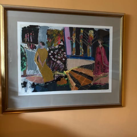 Etsning av Rene Carcan, tittel "Password" som er ferdig innrammet, noen skrammer på rammen. Ett galleri tar 2300 + innramming + kunstner avgift