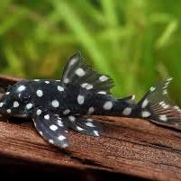 Unge Ancistrus sp. «oppdrettvariant», ca 4-5 cm lange. Dette er en god algespiser som ikke blir altfor stor, og bruker mye tid på å beite på alger. Den er stort sett veldig fredelig mot annen fisk, og passer inn i de fleste akvarier. Blir omtrent 15 cm lang som fullvoksen.