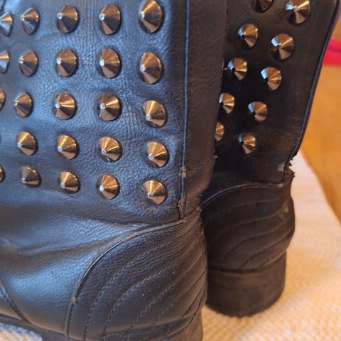 Kjempe kule boots med nagler. Ekte skinn. Ble dessverre for små til meg. Selges billig for å få plass. Kostet vel 1500 ny.