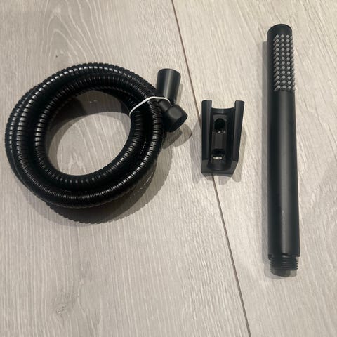 En liten plastbit er knekt av + en liten sprekk nederst i slangen. Det var sånn når jeg fikk den i posten