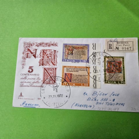 Litt skrukkete og med hjørnebrett, ellers er konvolutten i bra stand.
