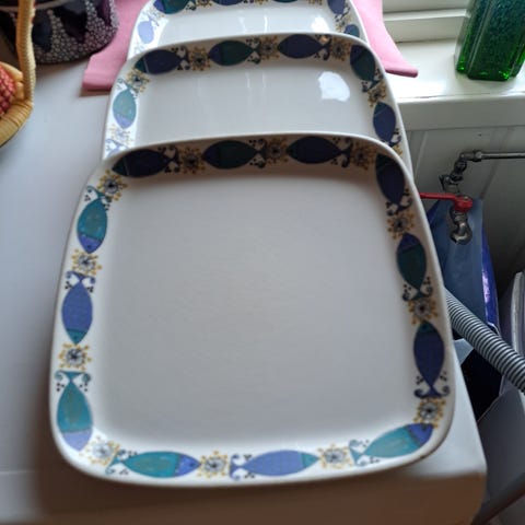 Kun tre desserttallerkener (17 cm.) igjen i serien Siri fra Turi Design / Figgjo. De er i god stand. Ønsker bud over kr. 100,-/stk. Hentes i Tønsberg eller pakkes godt og sendes for kr. 70,- inkl. sporing og forsikring
