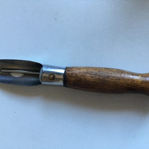 Eldre kjøkkenredskap for å f.eks. mose kokte poteter, eller dele andre ting i små biter. Arvegods, ukjent alder.