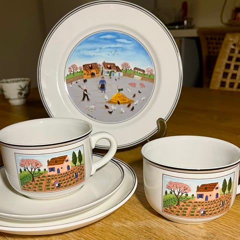 Liten asjett Ø12cm, og kopp Ø7,5cm H7cm,