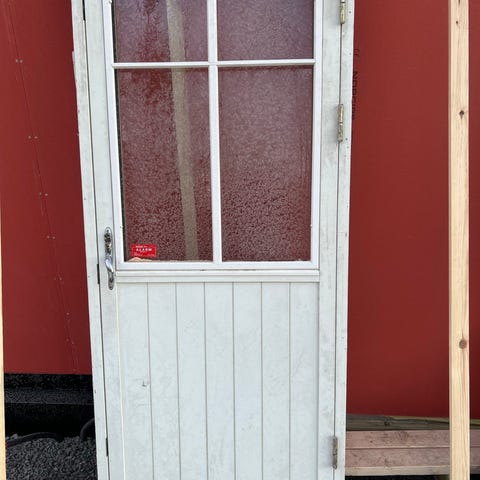 Brukt ytterdør hvit 200 x90 med ramme / ønskes kjøpt billig, skal brukes i bod. Bor i Tønsberg. Ta gjerne kontakt på mobil. 97755538