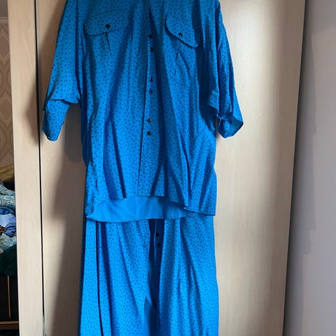 Skjørt og overdel i lett, glatt, elastisk stoff. Kr 100+ ev. porto. Eg bruker ikkje betalings-/sendingsløysinga Fiks ferdig.