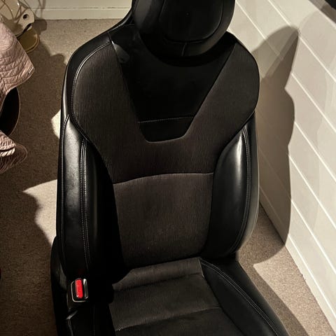 Komplett stoffinteriør i beige, med 2 forstoler, baksete og sidepaneler.