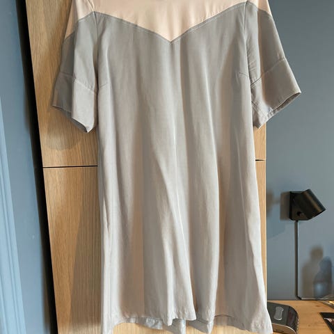 Cream kjole, flotte rosa farge, plisse stoff, størrelse 40.