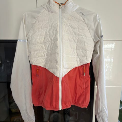 Lett løpe-/treningsjakke fra Johaug i str. S med god utlufting. To zip-lommer i front og lett innsving. Kun brukt et par ganger.