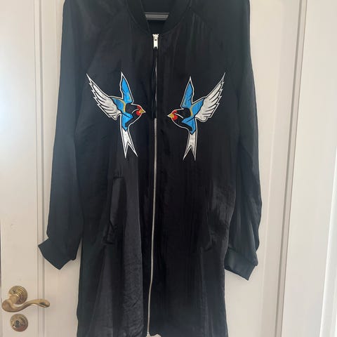 Pent og lite brukt jakke, går til rett over knærne (jeg er 168). Har selv brukt den som kjole.