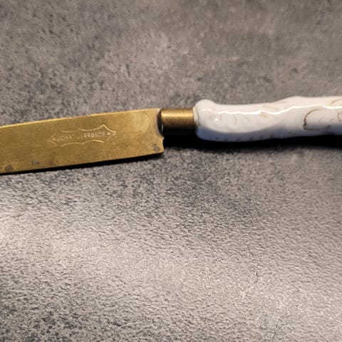 Fruktkniv med porselenhåndtak.