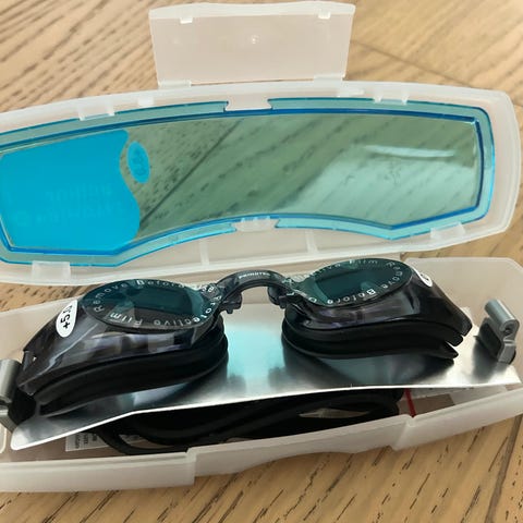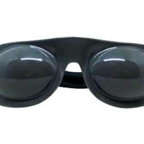 Små solbriller som ikke gir deg hvite, bleke felt rundt på huden rundt øynene slik det gjør med vanlige solbriller. Så brillene dekker der de skal når du soler deg i skarp sol og skal slappe av. Ubrukte. Strikk rundt medfølger