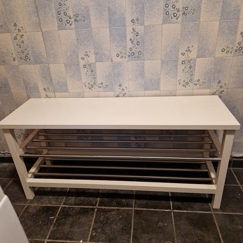 Fra IKEA. Lengde ca 90 cm, høyde ca 38 cm.