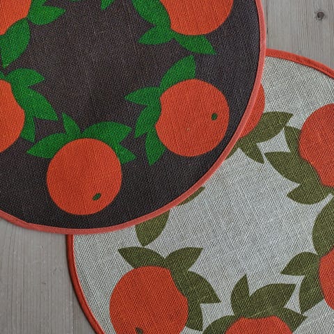 brikke i søm, søt med jordbær . Fra Orient Design