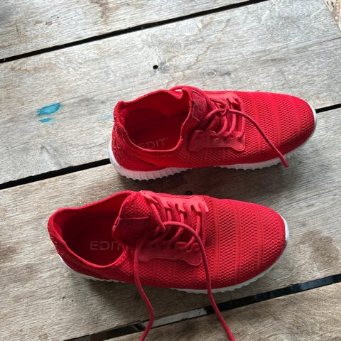 Veldig kule hvite sneakers fra Edit som passer det meste. Str37, lite brukt men det er en liten ripe forran på høyre skoen.