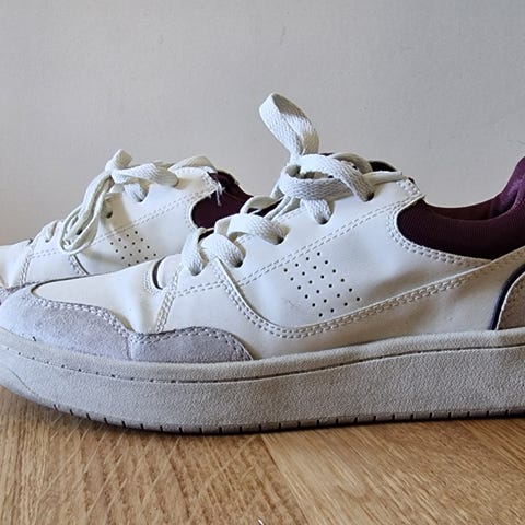 Veldig kule hvite sneakers fra Edit som passer det meste. Str37, lite brukt men det er en liten ripe forran på høyre skoen