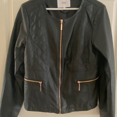 "skinnjakkke" i PU skinn fra Zizzi, str 48