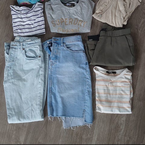 Søkeord: klespakke dame, klær str M, topper, kjoler, sommertøy, basisgarderobe, lot, klær bunke, dameklær