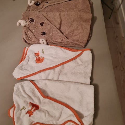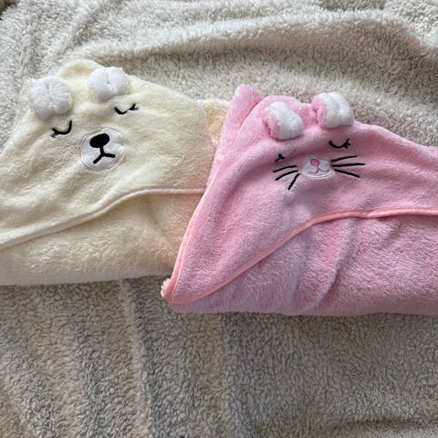2 stk håndklær m/ hette. Ingen flekker/ hull.