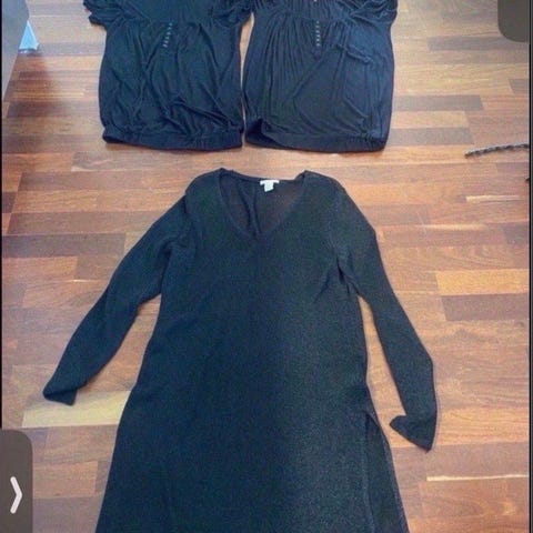 Et fint skjørtet en svart overdel selges , str S , overdelen har rynker bak , samlet kr 100, ,